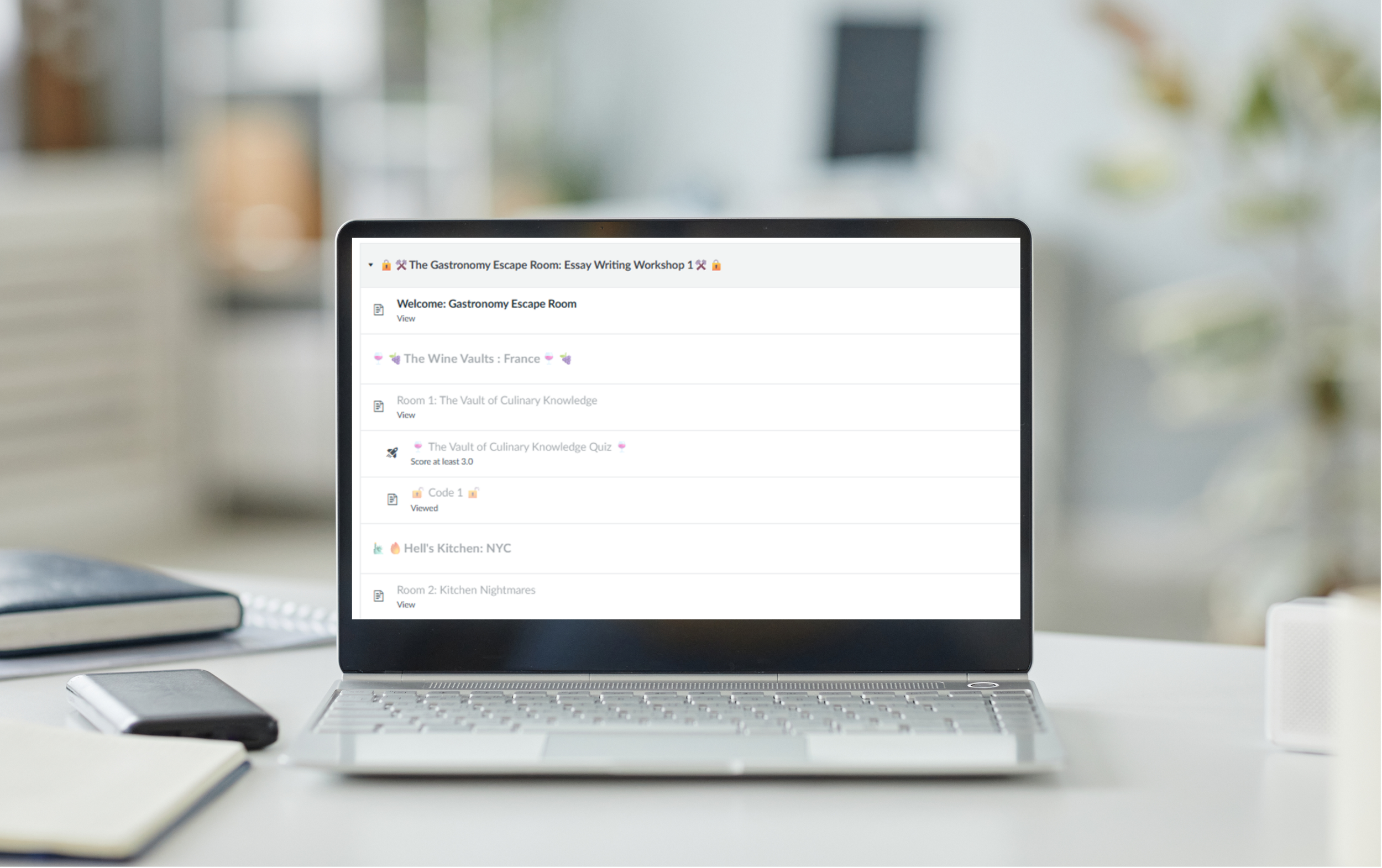 I redesigned the blended-learning module as a gamified learning pathway within Canvas, structuring content as a series of locked ‘rooms’ that learners progressed through by completing specific learning actions.